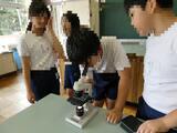 今日の給食でブドウが出ました。新鮮なブドウが児童に届くよう、調理員はブドウを房から切り離し、1粒ずつ枝を少し残してカットしています。